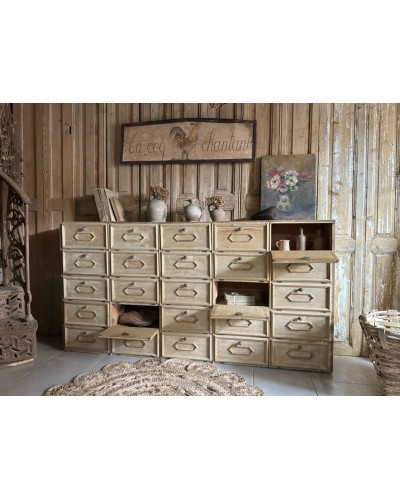 Cet ancien meuble à clapet, tout en bois blond, respire la douceur et l’âme du temps passé. Ses clapets délicats s’ouvrent sur un intérieur surprenant de rangement, parfait pour accueillir les chaussures près de l’entrée, classer les papiers dans le bureau, ou réunir une vaisselle honnête dans la cuisine. Sa patine légère raconte des histoires et sa silhouette chaleureuse apporte une touche cosy à n’importe quelle pièce.