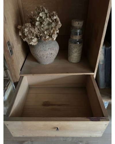 À l’intérieur, deux niches verticales et un tiroir secret accueillent les trésors du quotidien : un flacon oublié, un bouquet séché, un carnet jauni…