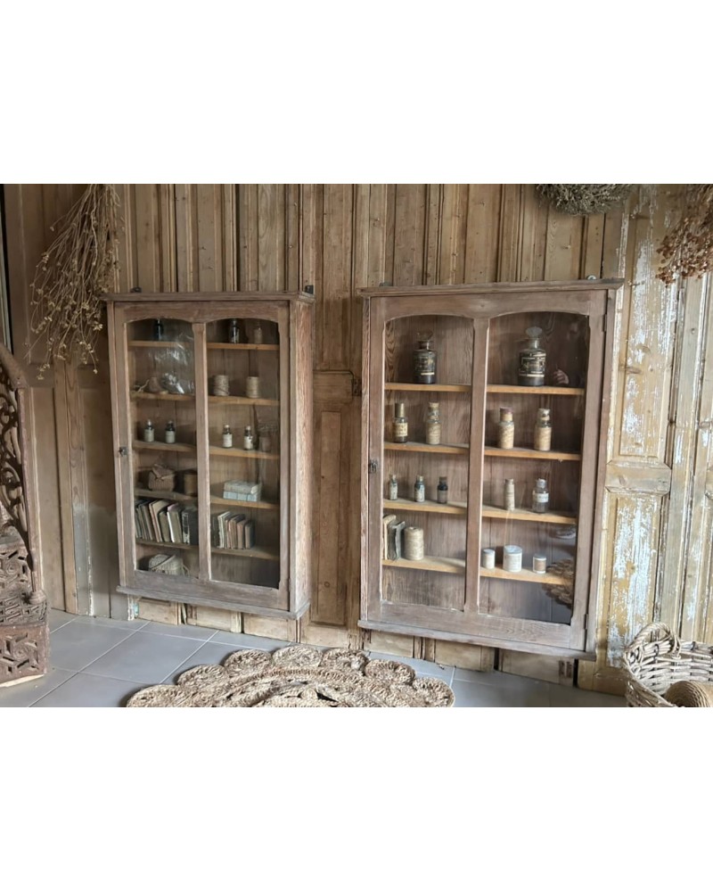 Le bois présente une patine naturelle, marquée par le temps, avec ses irrégularités et traces de vie qui font tout le caractère de ces vitrines. Elles trouveront parfaitement leur place dans un intérieur campagne chic, maison de famille, boutique, cabinet ou cuisine de charme.