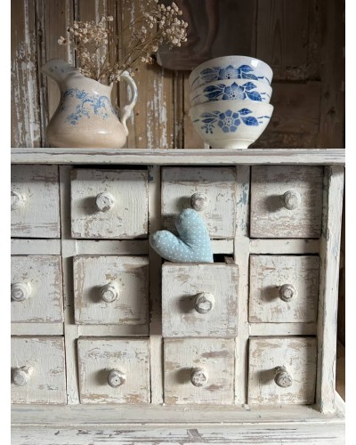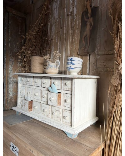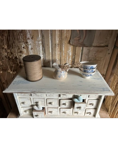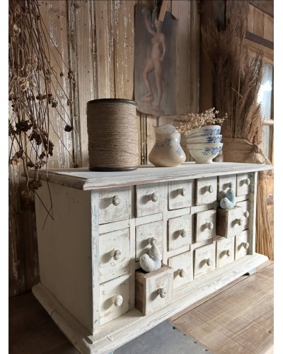 Ce petit meuble avec ses multiples tiroirs patinés par le temps, invite à l’organisation sensible et à la beauté du quotidien.