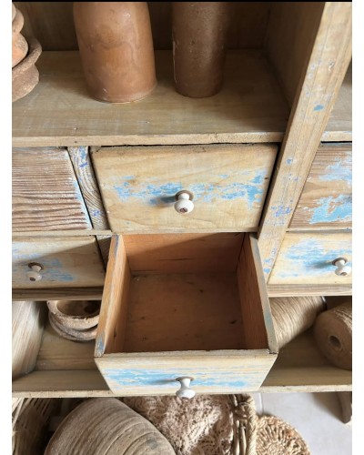 Chaque détail raconte son usage d’origine : un meuble conçu pour trier, stocker, organiser… aujourd’hui prêt à accueillir livres, linge, vaisselle, objets décoratifs ou trésors du quotidien.