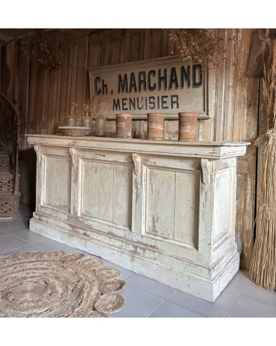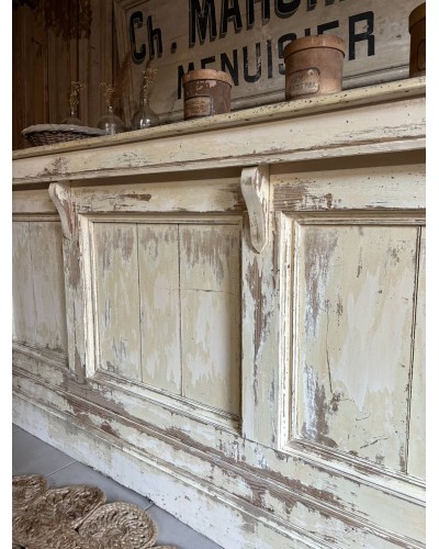 Ce magnifique comptoir ancien est une pièce rare, emblématique des anciens commerces d’autrefois.