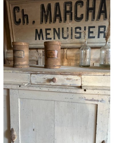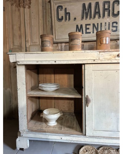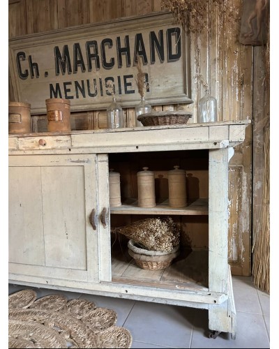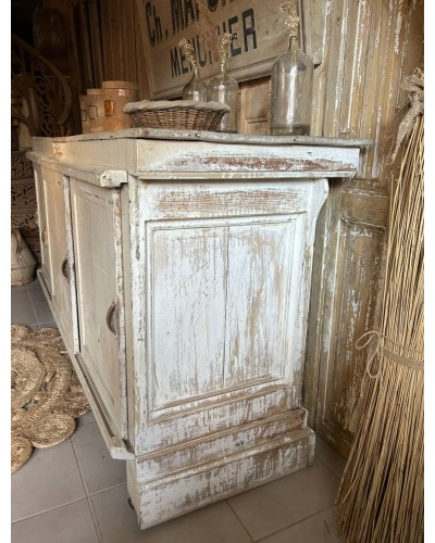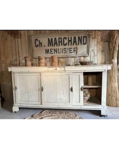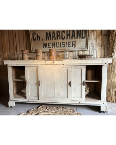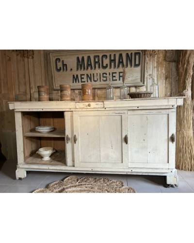 Comptoir ancien de commerce patiné - Portes coulissantes & tiroir - Debut Axe