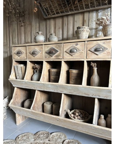 À la fois meuble de métier et élément décoratif, ce grainetier trouve sa place dans une cuisine de campagne, une boutique, un atelier créatif ou un intérieur bohème en quête d’authenticité.