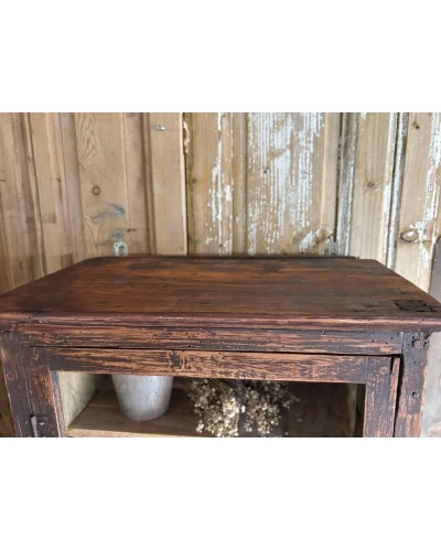 Réalisée en bois avec sa patine brune d’origine joliment usée par le temps, elle possède une porte vitrée encadrée de ferrures anciennes qui lui donnent beaucoup de caractère.