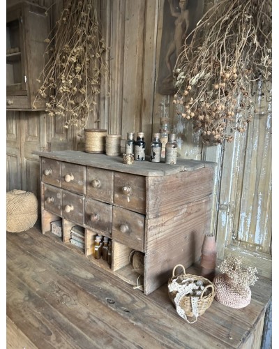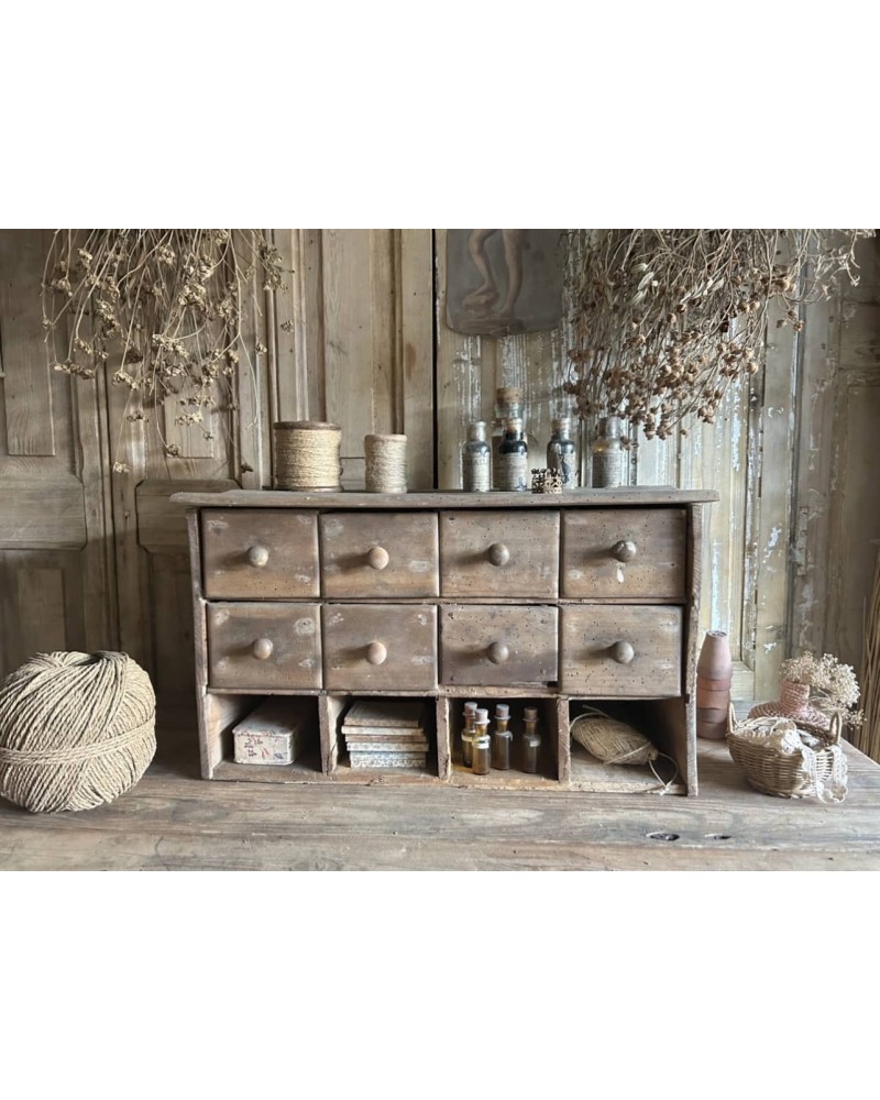 Ancien petit meuble de métier, 8 tiroirs & niches ouvertes