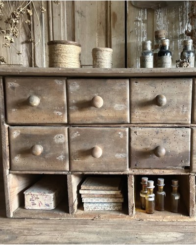 Authentique petit meuble de métier ancien en bois massif, patiné par le temps.
