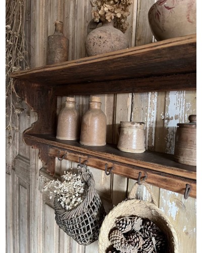 Charmante étagère ancienne en bois, autrefois suspendue dans une cuisine de maison de campagne.