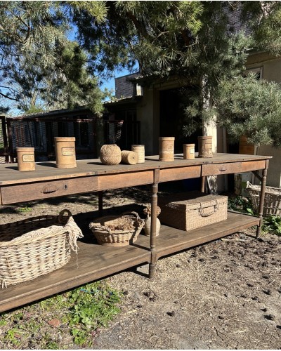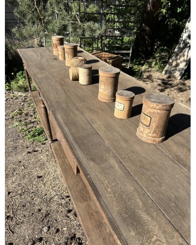 Ancienne table de drapier en chêne massif, aux proportions exceptionnelles et à l’authenticité rare.